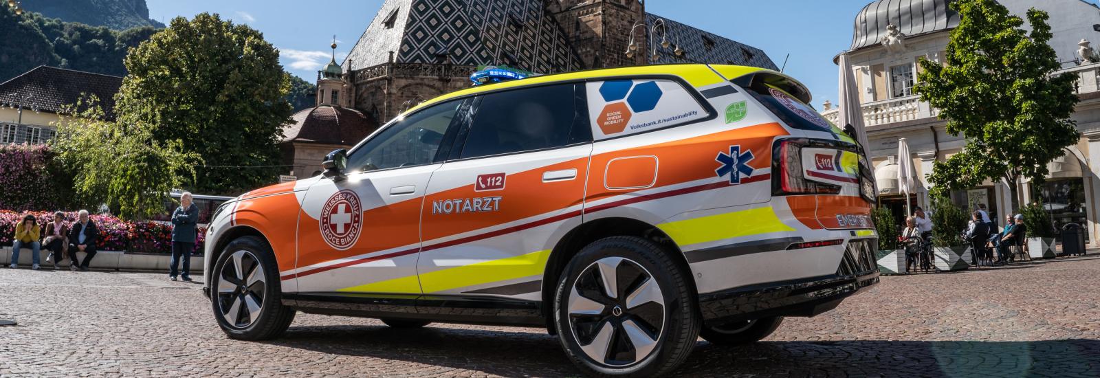 Beim neuen Notarzteinsatzfahrzeug handelt es sich um einen Volvo EX90, ein vollelektrisches Fahrzeug mit hoher Reichweite, modernster Sicherheitstechnologie und ausreichend Platz für die nötigen notfallmedizinischen Geräte. Umfangreiche Tests bestätigten, dass das Fahrzeug konventionelle Notarzteinsatzfahrzeuge im Alltag vollwertig ersetzen kann – bei gleichzeitig emissionsfreiem Betrieb. „Es ist eine wichtige Etappe auf unserem Weg in Richtung nachhaltiger Mobilität“, betont Ivo Bonamico, Direktor des Landesrettungsvereins, der sich zugleich bei der Südtiroler Volksbank AG bedankt. Diese hat das Projekt von Beginn an finanziell und konzeptionell unterstützt und damit einen wesentlichen Beitrag zur Umsetzung geleistet.